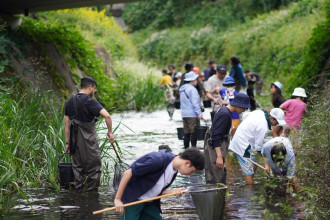 水生生物の調査をしながら自然を楽しく学ぶワークショップ「釜川おさかなガサガサ調査」が10月13日、釜川上流部で開催された。