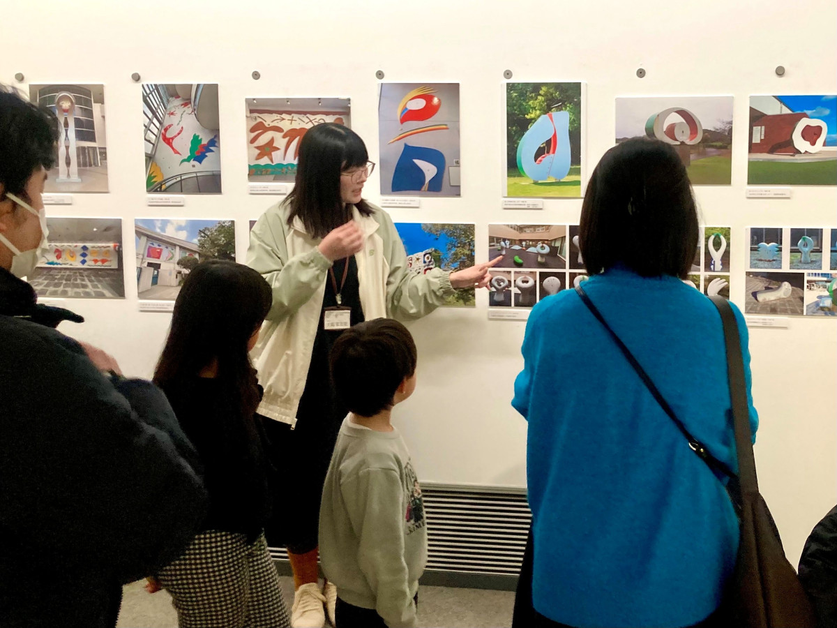 パブリックアートの解説をする大城さん