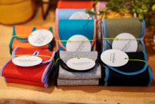残布をアップサイクルしたカラフルな靴下ブランド「マリーナカーナ」の「SOKUSEKI SOX(ソクセキソックス)」のポップアップが現在、宇都宮の三島家具(宇都宮市インターパーク6)企画展スペースで開催されている。