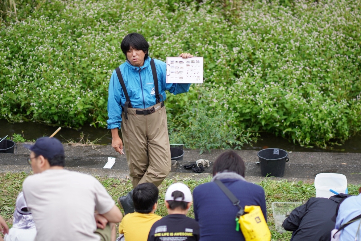 水生生物の調査をしながら自然を楽しく学ぶワークショップ「釜川おさかなガサガサ調査」が10月13日、釜川上流部で開催された。