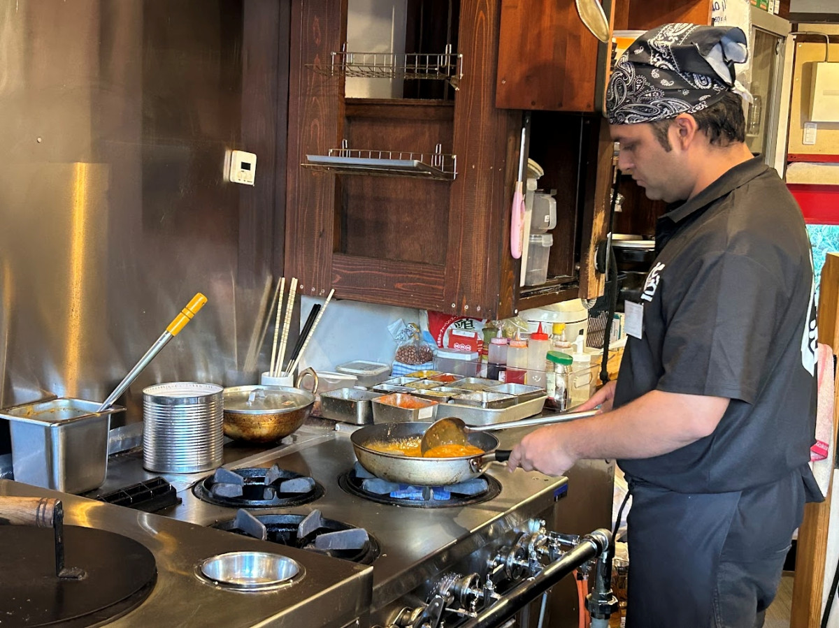 調理する「とどろきダイニング」店主のサントスさん