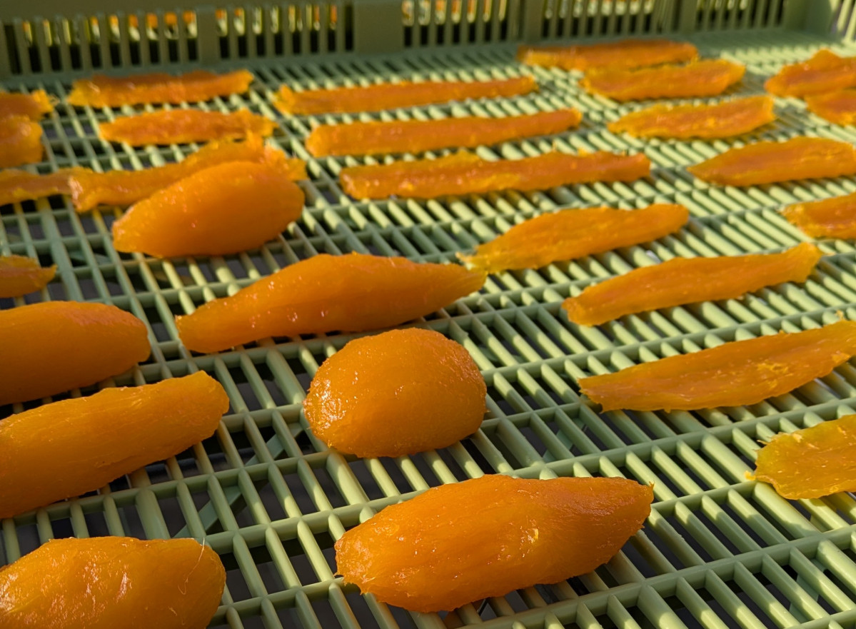 「くしたに農園」乾燥させる干し芋「ほしあかね」の様子