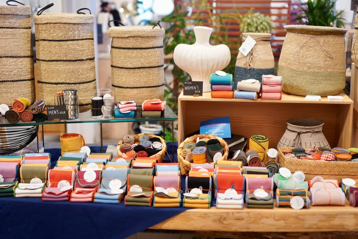 残布をアップサイクルしたカラフルな靴下ブランド「マリーナカーナ」の「SOKUSEKI SOX(ソクセキソックス)」のポップアップが現在、宇都宮の三島家具(宇都宮市インターパーク6)企画展スペースで開催されている。