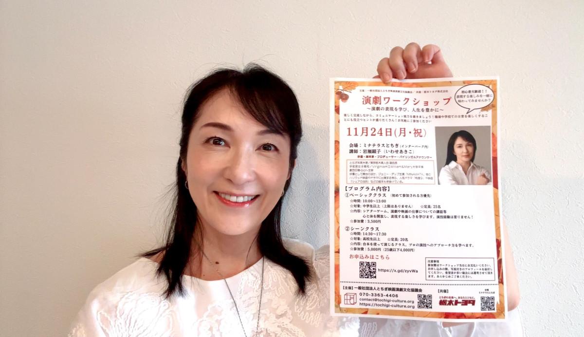 一般社団法人「とちぎ映画演劇文化協議会」が11月24日、ミナテラスとちぎ(宇都宮市インターパーク6)で演劇ワークショップを開催する。