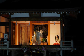 中秋の名月十五夜の観月会が10月6日、今泉八坂神社(宇都宮市今泉4)で開催され、約200人が月見会を楽しんだ。